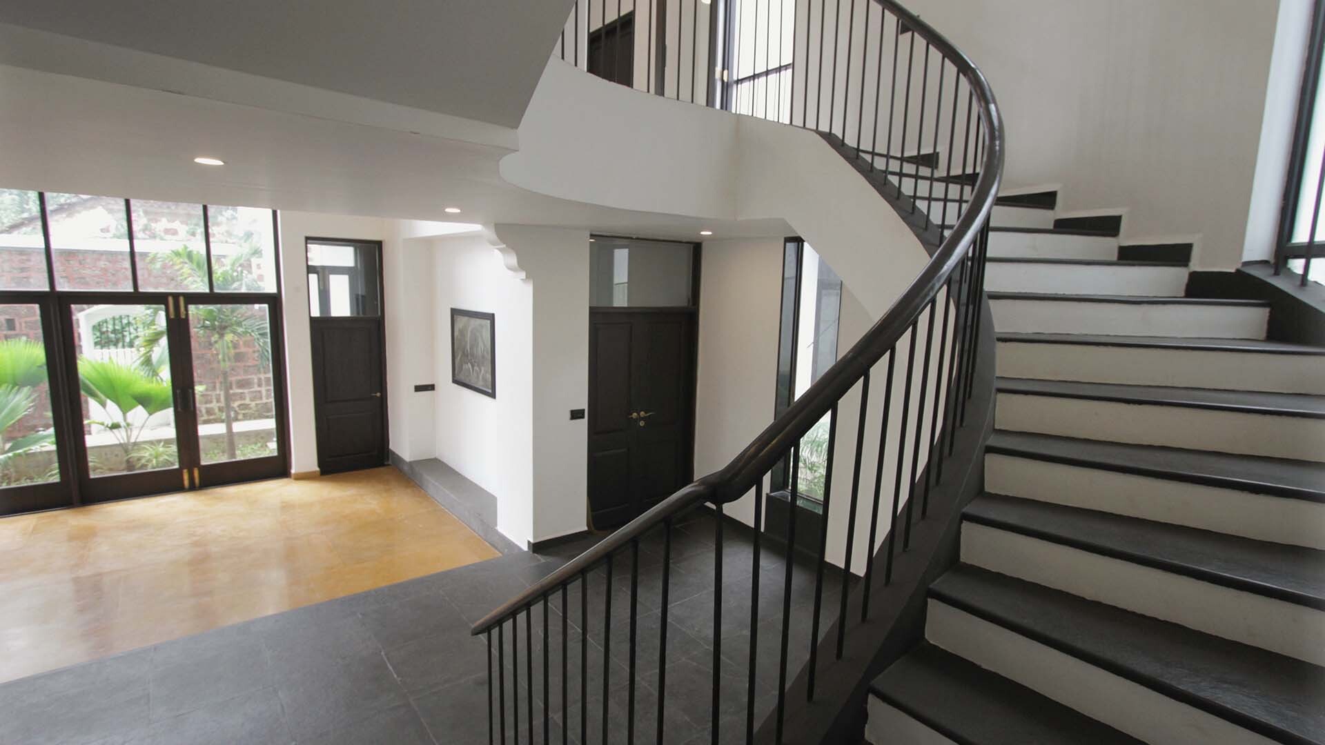 Master bedroom: Vista Do Rio sits at the end of a thoroughfare that’s flanked on either side by the Aldona fields. The master bedroom in the villa is a sprawling 700 sq. ft. en-suite expanse that looks upon this path, the fields and the river below it. Originally designed to accommodate two bedrooms, it was later decided by the architects and design team to create one large purposeful space that captures the true essence of luxury living. Space. The master bedroom has a 200 sq ft attached study with it’s own balcony that looks upon the inner courtyard on one side and upon the river and fields from the other. Sitting at your desk in the study you are transformed momentarily from CEO to voyeur as you look upon the villagers walkng teir dogs, tilling the fields or returning home from your hidden vantage point, incognito.